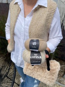 Material: Lana Grossa „Sottile“ (85% Baumwolle, 15% Schurwolle Merino) + „Setasuri“ (69% Suri Alpaca, 31% Seide), unsere Größe 36/38 200g Sottile, 125g Setasuri, Nd 3,5-4,5